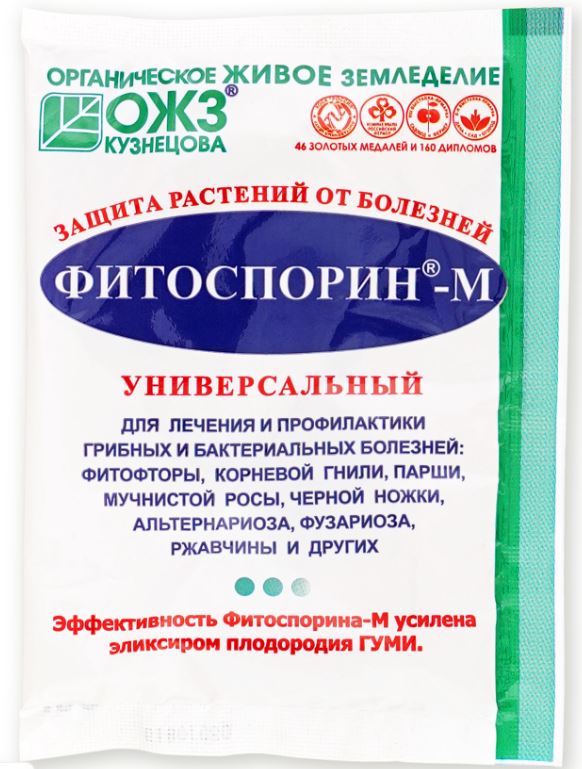 Биофунгицид, в основе которого – полезные фитобактерии в споровой форме, проникающие в ткани растений и вырабатывающие биологически активные вещества для их защиты и стимуляции. Защищает от гнилей, парши, черной ножки, фузариоза, фитофтороза, фомоза, серой гнили, ризоктониоза, альтернариоза, бактериозов, пероноспороза, мучнистой росы, ржавчины, септориоза и др. болезней.