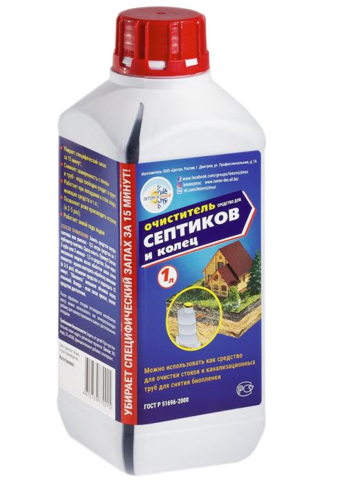 Средство для септиков и колец "Летом и Зимой" биоактиватор для бактерий, выгребных ям, дачных туалетов. Убирает специфический запах за 15 минут, снимает "зажиренность" с почвы и труб - вода свободно уходит в грунт;в отличие от бактерий - идеально работает при попадании в сток хлора, моющих средств и т.п.;позволяет реже производить откачку (в 2 - 5 раз);работает зимой подо льдом.